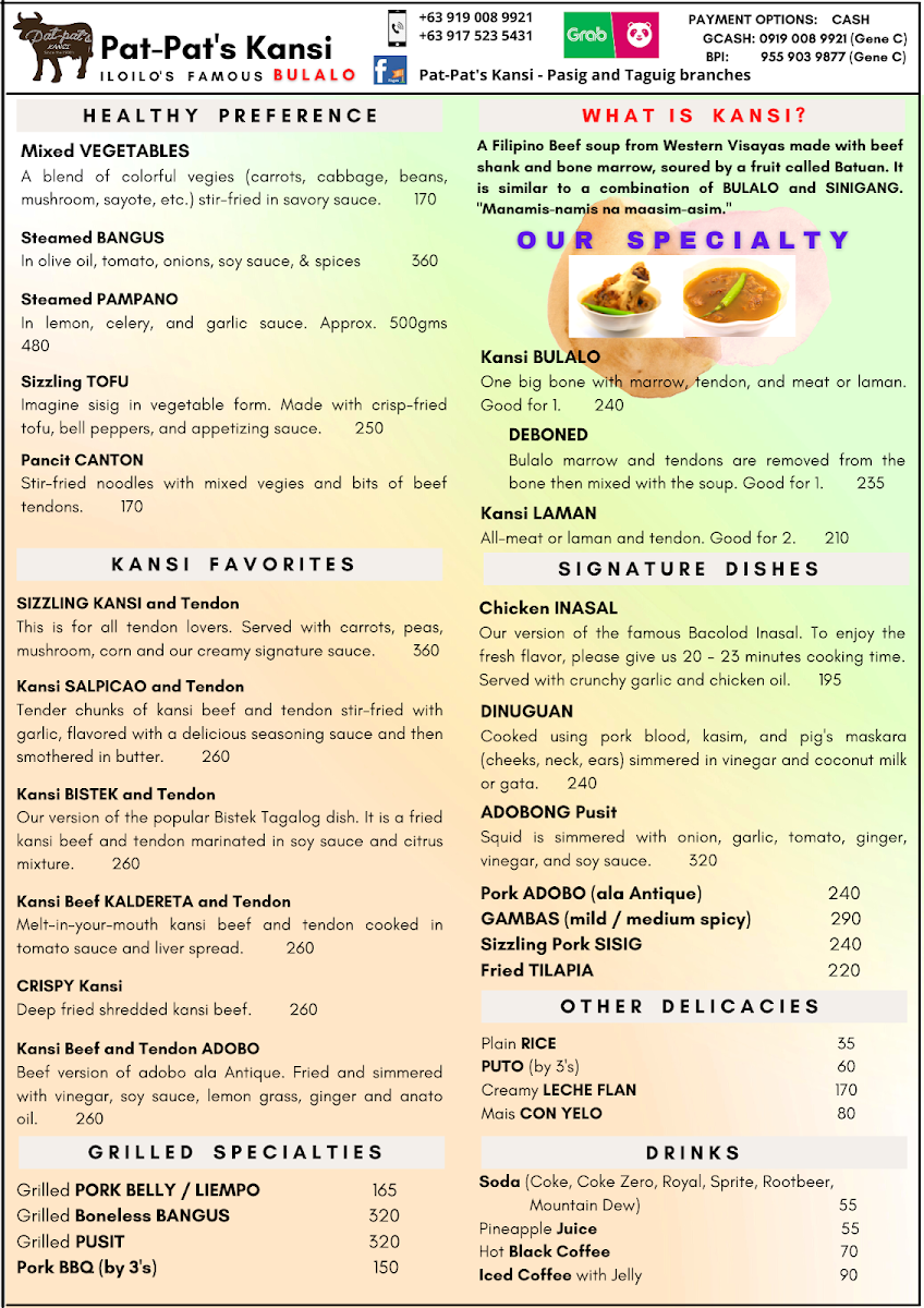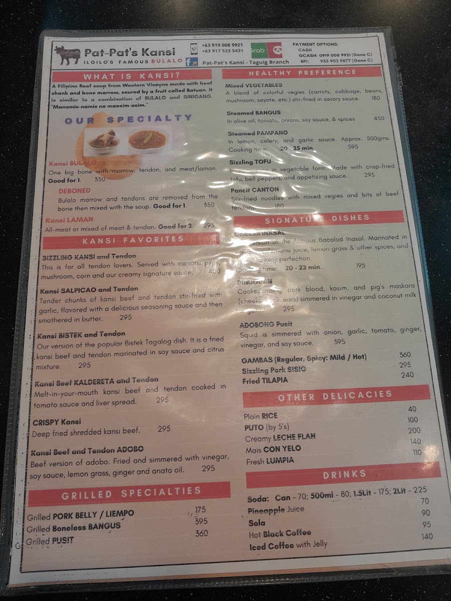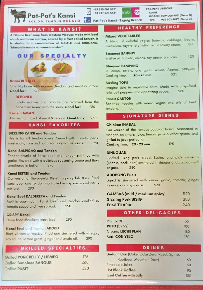 Welcome to Pat-Pat's Kansi Taguig branch, a culinary gem nestled in the vibrant heart of Taguig, Metro Manila. Located at Block 87, Lot 14 on Bayani Road, this branch is part of a brand celebrated for serving kansi, a traditional Filipino dish hailing from Iloilo. The atmosphere here is cozy and inviting, making it an ideal spot for both quick eats and leisurely meals.